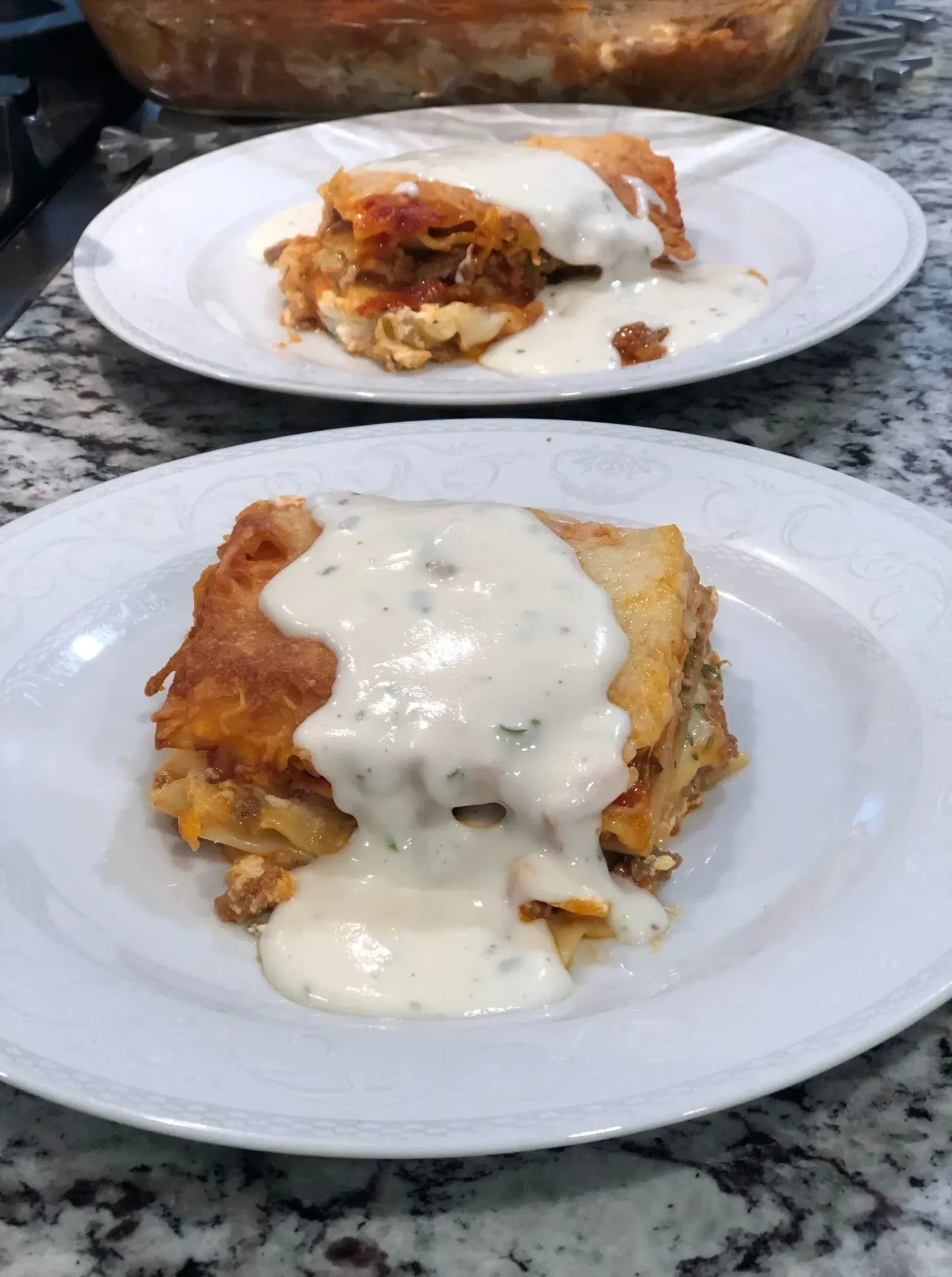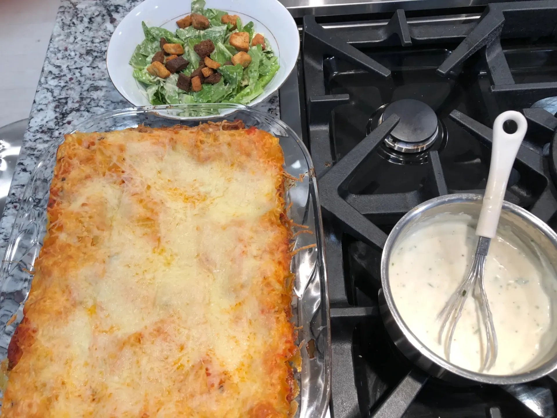 How I make lasagna with tomato sauce made from tomatoes from our home garden. I serve it with a rich Alfredo sauce.