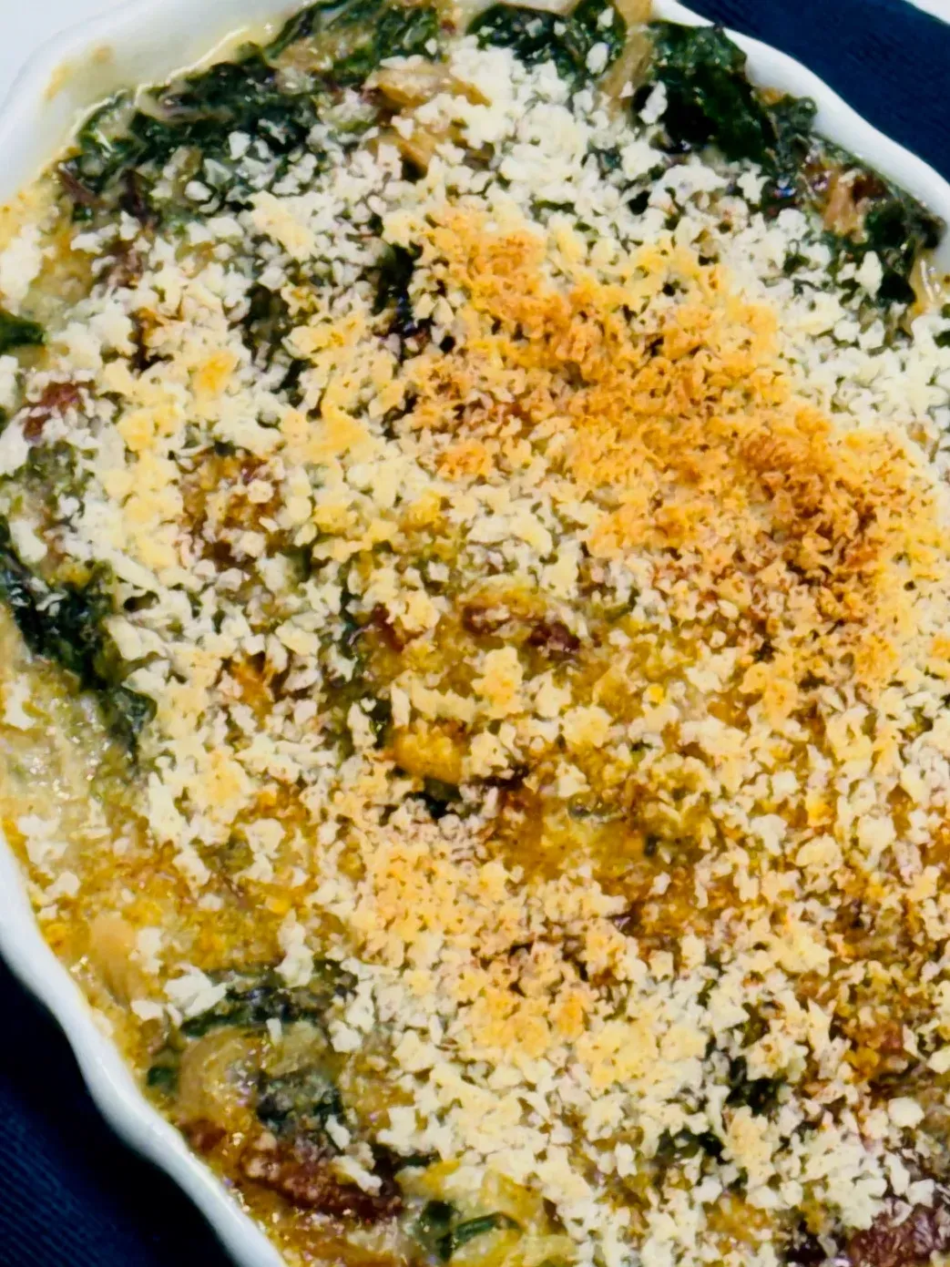 Lastly is one way to make Swiss chard. Chard like kale is easy to grow, however many people dislike the bitter taste of these highly nutritious brassicas. I made a gratin dish of thinly cut chard leaves with the ribs removed, with bacon, garlic, caramelized onions, heavy cream and cheese (I used the TOMA cheese which is much like a Fontina). I then put the creamed chard into a gratin dish topped with Japanese breadcrumbs and browned under the broiler. My wife Brigitte who is not a fan of greens loved it.