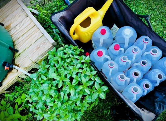 Two more tips- we use rainwater as much as possible which we collect in two rain barrels and water with re-cycled milk jugs. Transporting them in a cart which saves us time and trips to the garden.