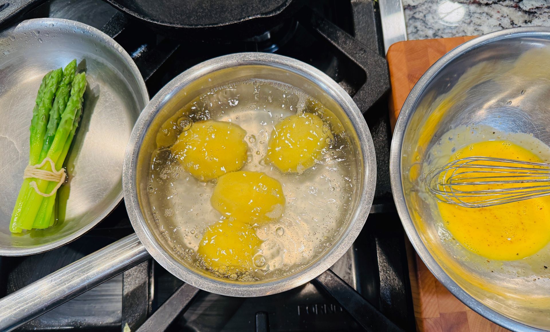 2. Whip and cook over lightly boiling water until light and fluffy. Cook the egg yolks to least 160˚F