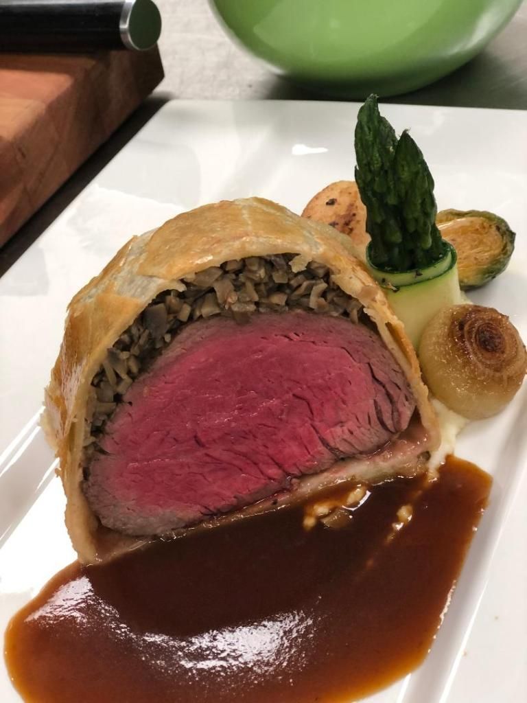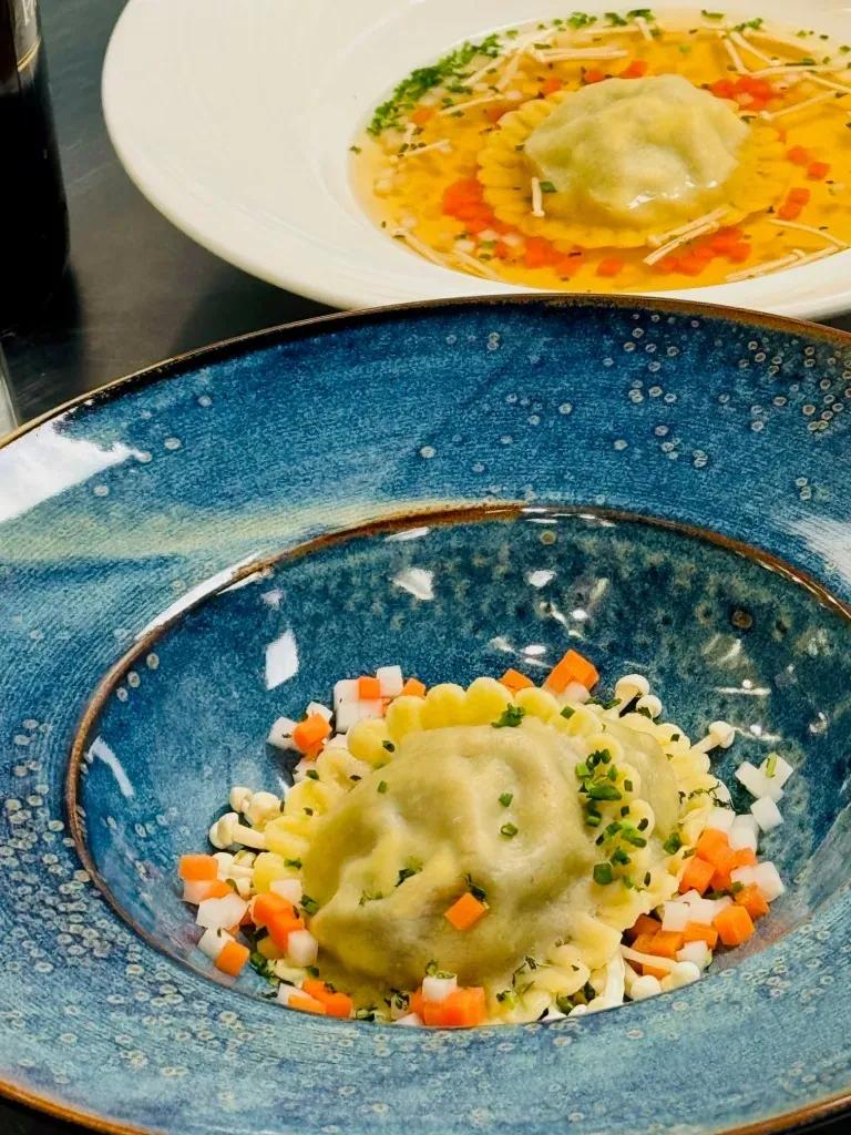 In the days of old alchemists attempted to combine base elements to create gold! I tell my students on day one, in my soup and sauce class that the aim of the saucier is to create gold level flavors and presentations from elementary natural food ingredients. In this image beef consommé is served with a braised short rib and wild mushroom ravioli.