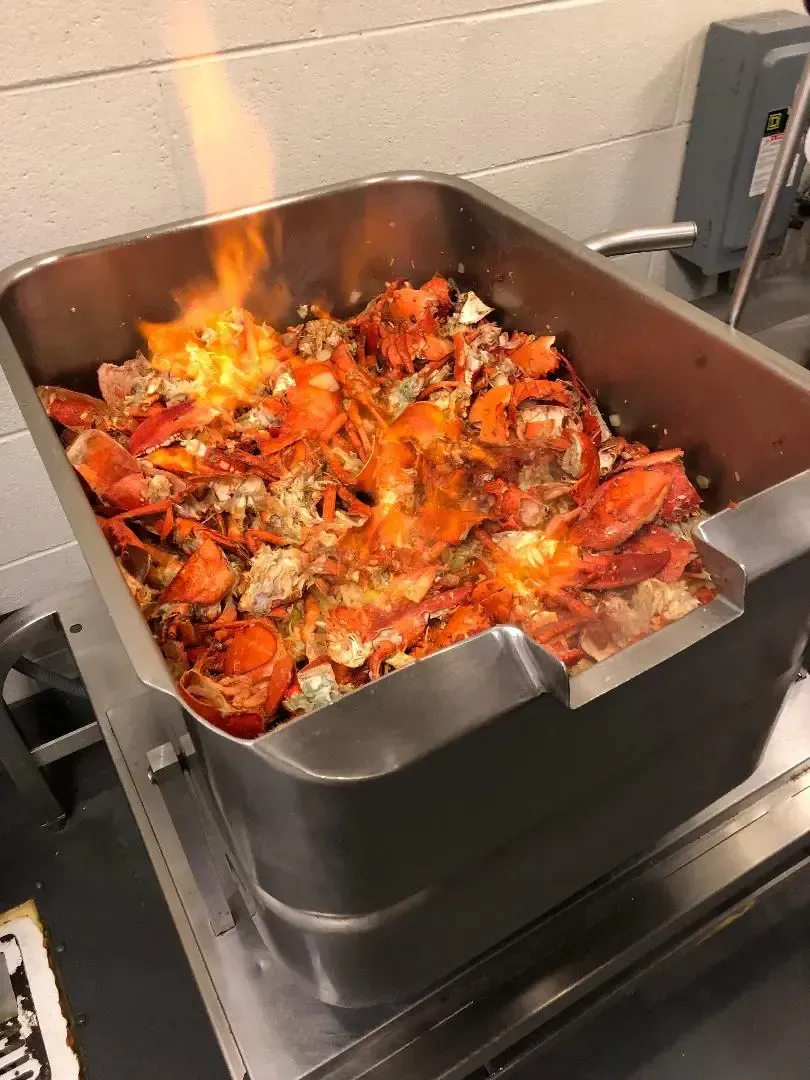- Strain and use for Sauce Américaine or Lobster Bisque.