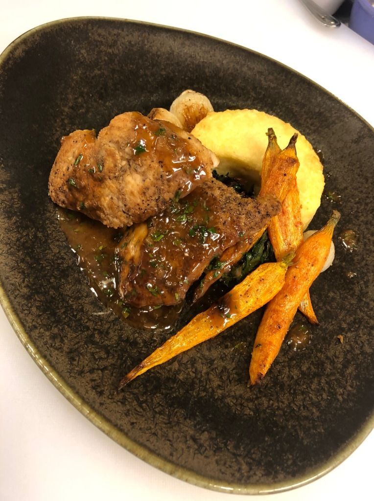 - To create sauces (in this image is a chicken Veloute with mushrooms and cream)