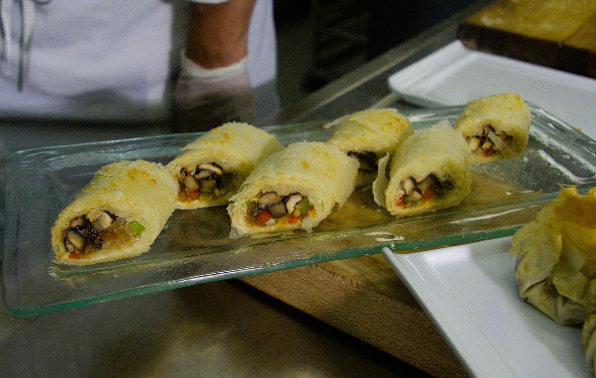Made with a variety of common doughs such as puff pastry, choux pastry, pate brisee, phyllo and crepes these types of savory pastries are best prepared with tasty fillings and luxurious ingredients. Served warm or cold they are always very well received and when produced with care can be both aesthetically appealing and delicious.